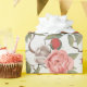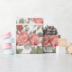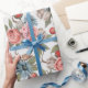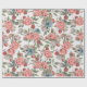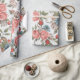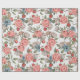 Rosa blå och vita blommor mönster med löv över vit bakgrund