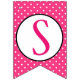 Super söt och snygg bröllopsfest-design perfekt för att fira brudens speciella dag. Flaggor banner är designad i rosa med vita prickar. Orden Bridal Shower! stavas ut på flaggorna i vit cirkel med svart kant och i alternerande rosa och svart teckensnitt. Flaggorna utan bokstäver har rosa hjärtan med vita prickar inuti vita cirklar. Denna bedårande flaggor banner är perfekt för att dekorera bröllopsfester!
