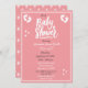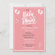 Perfekt för inbjudningar till Rosa och Vita babyskor för flickor. Utformningen har vita baby fötter och vita stjärnor. Bakgrunden till den vita stjärnan stämmer överens med framsidan av denna färgstarka inbjudan. Konstruktionen kommer säkert att glädja mamma.