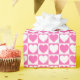 En papper förpackning byggt med ett rosa och vitt schaktat mönster med hjärtan på stor storlek. Anpassa den vita bakgrunden färg bland flera alternativ.