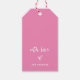 Dessa enkla och snyggt rosa- och vita presentmärkre säger "med kärlek" i avslappnad, modern manustypografi, tillsammans med en elegant som matchar hjärtat och en ställe som lägger till ditt namn.