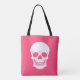 En enkel vit skallillustration på rosa färg designad med Halloween i åtanke.