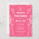 Rosa och vit western inbjudan till en flickas första födelsedagsfest.