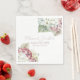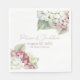 De här romantiska bröllop-servetterna i blommigt har vattenfärgsfärg och vit rosa. En ömtålig bukett av vattenblommor visas på toppen och en annan på grund. Ett par exempelpars namn skrivs ut i mitten i ett elegant-skriptteckensnitt, följt av datum och plats för bröllop.