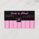 Rosa och vitt lodrät rand på grund, med ett svart färg överst och en liten låda för ditt märke, gör ett vackert affärskort för en skönhetare eller skönhetsalonägare. Baksidan är helt vit med utrymme för avtalade tider eller kundbelöningar.