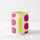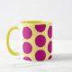 Min ursprungliga digitala konst i mugg har mönster i magenta rosa polka dots på en bakgrund av citron-gult för ett konstverk stil. Insidan av mugg och handtaget finns i en gult som kompletterar teckningen. Färg och mönster har en reflex för en klassisk beröring. Dessa är 11-uns mugg (men kan storlekssorteras större om så önskas), bara den perfekt som är storlek för ditt kaffe eller te - eller till och med hett choklad! Det skulle vara en underbar gåva och man kan lägga in paket med kaffe, tepåsar eller hett choklad. En annan presentidé är att lägga en liten växt i den för att göra extra speciellt för din älskade.