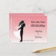 Denna design har en rosa ombré bakgrund med en silhuett av en brud och brudgum. Det finns en klunga stjärnor i form av ett hjärta bakom det lyckliga paret. Baksidan av denna eleganta design har en enkel ombré bakgrund. Det finns gott om anpassningsbar text på både framsidan och baksidan av detta vykort så att du kan anpassa det med din egen information. Visas här som en "Spara datum" påminnelse för bröllop, denna mångsidiga design kan också anpassas för bröllops shower eller årsdagar! Vi har denna design tillgänglig i en mängd olika färger och på en mängd olika matchande produkter!