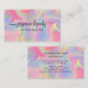 Skapa ett varaktigt intryck med detta rosa opal vattenfärg-visitenkort, förstärkt med skimrande guldfärgade glitteraccenter. Den livfulla blandningen av rosa, gröna och opalescerande nyanser skapar en konstnärlig och chic design, perfekt för skönhetsproffs. Idealiskt för frisörer, sminkartister, esteter och kreativa entreprenörer som söker en modern, elegant och unik varumärkeslösning. Anpassa dina detaljer för att sticka ut med stil.