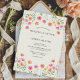 Vacker blomsterliknande bröllopsinbjudan med förtrollande rosa orangea och gula blommor. Akvarellstilen fångar den känsliga skönheten hos vilda blommor i full blom, vilket skapar en romantisk och eterisk estetik. Den charmiga blomsterkanten inramar graciöst dina personliga bröllopsdetaljer och skapar en vacker souvenir för dina gäster. Perfekt för ett vår- eller sommarbröllop med bohemisk eller trädgårdstema. Vänligen bläddra i min butik i Wildflower Bloom Collection för matchande artiklar.