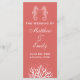 Den här designen har en korallrev och ett par havshästar. Bakgrunden är en söt rosa orange lax färg. Anpassa det här programmet med information om bröllop. Dessa är underbara för strandtema, hav, havsbottnar, kust- och destinationslandskap. Berätta om du behöver hjälp med anpassning. Baksidan kan bli komplicerad, särskilt om du har många människor i bröllopsfesten.