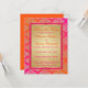 Denna livfulla östindiska Sari-inspirerade bröllopskort med "save the date" i nyanser av het rosa, fuchsia och orange har ett förgyllt damaskmönster med en rosa glittrig (UTSKRIVEN, inte äkta) ram. De rika färgerna gör det perfekt för ett etniskt bröllop, muslimskt bröllop eller östindiskt bröllop. ****Vänligen Observera att inga element på denna inbjudan är upphöjda eller präglade. Allt är tryckt plant. Denna inbjudan skulle vara perfekt för en vår-, sommar-, höst- eller vinterindisk, hinduisk, sanskritisk eller muslimsk vigselceremoni, förlovningsfest, årsdag eller annan bröllopsfest. Om du ändrar storlek på inbjudan, eller om du byter teckensnitt, eller storlek på teckensnittet, kan en del av designen och/eller texten kapas av. Allt kommer att skrivas ut som du ser det på din skärm. Jag kommer inte att se din inbjudan, och Zazzle kommer INTE att rätta någonting (stavfel, justering etc.). Texten och papperet är helt anpassningsbara. Om du