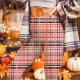 Rosa, Orange och Svart Rutigt Höstmode Leggings