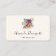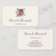 Affärskort med en arrangemang blomma som innehåller söt rosa, orange och vit ros omgiven av grönt löv.