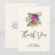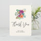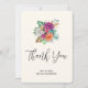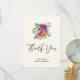 Tack för att du har ett kort med en arrangemang blomma som innehåller söt rosa, orange och vit ros omgiven av grönt löv.