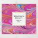 Bröllop flaska-etiketter med en coola-trippy-psykodelic-design. Rosa, orange och blått allt snurrande runt. Retro hippie vibe.