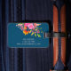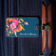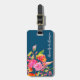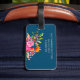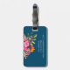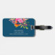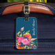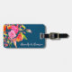 Lättare blommigt bagagetagg med namn i skript på marin - perfekt personlig resetillbehör för snyggtens resväska eller ryggsäck-ID.