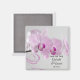 Ställ in tonen för dina kommande ungar med söt Rosa Orchid Elegance Bröllop spara datum Square Magnet. Elegantens anpassningsbar blommar giftermål behålla av datummagneter har ett botaniskt foto av en blommar av rosa phalaenopsis eller blomma med vit bakgrund och rosa snurrar.