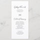 Ge dina gäster i giftermål-ceremonin med söt Rosa Orchid och Pearls på Black Bröllopsprogram. I det här elegant bröllop-tidslinjeprogrammet för anpassningsbar av blommor finns ett blommigt foto av en blommar för rosa av falaenopsis eller blomma med en vit pärlhalshalsduk och möhippa på en svart bakgrund.