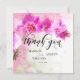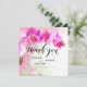Elegant- och konstnärlig kalligrafi i Tack med en fantastisk vattenfärgsblomma, rosa- och vattenfärgsblomma, grönt och rosa färg stänk i bakgrunden. Anpassa genom att ändra textinformationen.