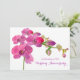 En snygg orkidé 25-års bröllopsjubileum inbjudan dekorerad med en handmålad akvarell orkidé blommor i rika nyanser av fuchsia rosa och plommon purpur. Rosa orkidéer är den traditionella blomman för ett pars 14:e och 25:e bröllopsjubileum. I Blommornas språk representerar orkidéen respekt och elegans.