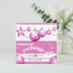 Anpassa den här prydnadsväxlingen party inbjudan med information om party. På inbjudans framsida hänger rosa och stjärnor upptill på julfestens inbjudan. Två större dekorationer av helgdag visas vid grund höger och grund lämnat om kortet med accenter av guld. Inbjudan är omvänd och har en sömlös mönster av stjärnprydnadsföremål och runt helgdag i rosa. Njut av dina festligheter och Glad helg! Designad av mw1designsart.