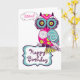 Rosa Ornate Retro Blommigt Uggla Grattis på födels Kort