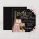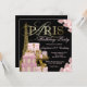 Paris födelsedagsinbjudan med vacker gyllene Eiffeltorn, eleganta Paris presentförpackningar, gyllene glitter högklackade skor och elegant gyllene Paris -skrift på en rik rosa och svart blomsterbakgrund. Denna vackra Paris födelsedagsinbjudan kan enkelt anpassas för ditt evenemang genom att helt enkelt lägga till dina uppgifter i den teckensnittsstil och färg du väljer. Detta är en tryckt design utan riktiga diamanter, juveler, glitter etc.