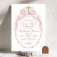 Rosa pärlor första nattvarden inbjudan, Boho blommig nattvarden kors dop inbjudan, Katolsk Primera Communion