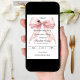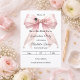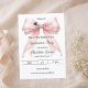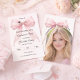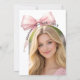 Meddela din milstolpe med denna Coquette-Student Save the Date. Designen har en frodig rosa rosett prydd med ömtåliga pärlband och en klassisk doktorshatt-ikon. Perfekt för den stiliga studenten som vill dela sin porträtt med familj och vänner.