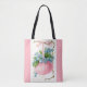 Ett enormt, rosa Påskägg med mycket litet blåa blommor hänger med ett tunt, rosa band. Meddelande: Påsk Hälsning. Bild av ett vykort för Vintage Påsk på anpassningsbarnas ljusa rosa bakgrund.