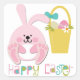 Rosa Påskhare Basket Fyrkantigt Klistermärke