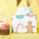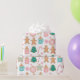Denna pappra förpackning har en mönster av dekorerade kakor för gingerbröd på en ljusvit bakgrund.