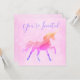 Skapa din egen enhörnings siluett rosa och lila flickiga inbjudningar. Enhörningen har ett pastellregnbågs ombre-filter applicerat med hjälp av systemet. Du kan flytta texten runt efter behov. De vackra kalligrafi- och handstilsstilarna kan anpassas.