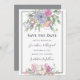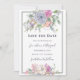 Modern bröllop spara datum skildrar ett enkelt grått ram med blommigtar med elegant i vattenfärger i nyanser av ljus , rosa, persikor och lila. *