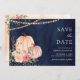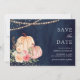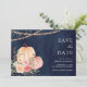 Rosa Peach Pumpkin Blommigt Navy Blue Bröllop Spara Datumet