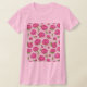 Kvinna t-shirt med vackra rosa peonies och grönt lämnar på rosa.