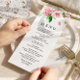 Rosa Peonies Flowers Bröllop Menu Meny