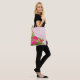 Med en säck som rymmer rosa peonier på en blek rosa marmorerad bakgrund. Samma utformning på båda sidor.