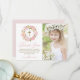 Rosa Peonies Wandemin First Heliga Communion Tack you Card. Anpassadets fototack är att du har ett platta kort med rosa vattenfärgspennor och ro med lövning, vrister och baby utandningsluft. Det här fototacket du kort för i blommigten kommer också att vara perfekt för Baptism och ett tack för Christening.