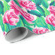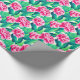Omslagning papper i mjuk vattenfärg mönster av rosa och grönt löv, på vit bakgrund