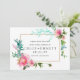De söt rosa-peonier som är inkapslade i modern botanisk löv dekorerar en chic guld ram. Löv och viner är djupt grönt till turkos blått. Textlayouten och typsnitt är moderna och nya. Baksidan är också grönt. Då sparas datuminbjudningskoordinaterna med Rosa Peony Spara datumsamlingen. Den innehåller kuvertklistermärken, kuvertlinjer och andra tillbehör som du kan använda för att göra användan Spara datum unik och speciell