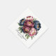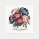 En vattenfärgad illustration av en bukett av marinblått, burgundärt och rosa med guld-trim på petalerna. Buketen placeras på en vit bakgrund. Peonierna har några löv vid basen. Färgämnena har en övertoningseffekt från mitten till kant. Guld-trimen på petalerna är tunn och böjd.