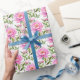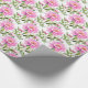 Omslagning papper i mönster av Mjuka rosa med sage grönt löv, skör mot vit bakgrund
