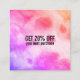 Lägg till mer information till detta pulserande vattenfärgsrabattkort/-affärskort. Handmålad av mig, för dig! Ta en titt på mina andra affärskort för abstrakt, förmånskort och rabattkort! Om du vill ha något anpassat, skicka ett meddelande till mig. Jag är lycklig för att skapa anpassningsbar färg och stilar.