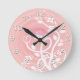 Rosa & persikopastel Spiral, filigree & Flowers Rund Klocka