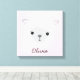 Med en söt och modern illustration av ett lamm (får) med ett manus för namnet. Anpassa denna kanvastryck för barnkammaren med får-motiv.