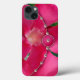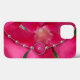 Original fotograferar på detta iPadfodral är en closeup av en ljus rosablomma med öppen sned boll för petals. En bakgrund av gröna löv kan ses mellan petalsna. Designen av fodral är i stilen av en blom- tygkoppling hänger lös, med ett veck över vifta med skisserat i blek - rosa pärlor och en runda skuggade rosa stängning med en pärla i centrera. Blomman centrerar, nära det bästa av handväskan, är ett mjukt gult elfenben som blandar in i rosor på dess rufsade ytterkanter.