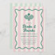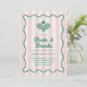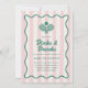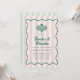 Kasta en födelsedagsfest av pickleball-domstolen med den här eleganten och vintage-inspirerade pickleball-festinbjudan. Den har en ljus rosa strimlad bakgrund, en kurva, vågigt grönt ram, "dinks and Drycker"-text i ett groovi-typsnitt, och en illustration av två pickleball rackets och en pickleball. Kortets baksida har en kontrasterande ljust grönt strimlad bakgrund.