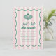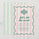 Kasta en födelsedagsfest av pickleball-domstolen med den här eleganten och vintage-inspirerade pickleball-festinbjudan. Den har en ljus rosa, strimlad bakgrund, en förbannelse, vågigt grönt ram och en illustration av två fickstötar och en pickleball. Kortets baksida har en kontrasterande ljust grönt strimlad bakgrund.