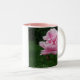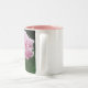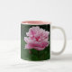 Denna vitmugg innehåller ett foto av en härlig rosa pion som är fullvuxen vid Bridgewater trädgårdar